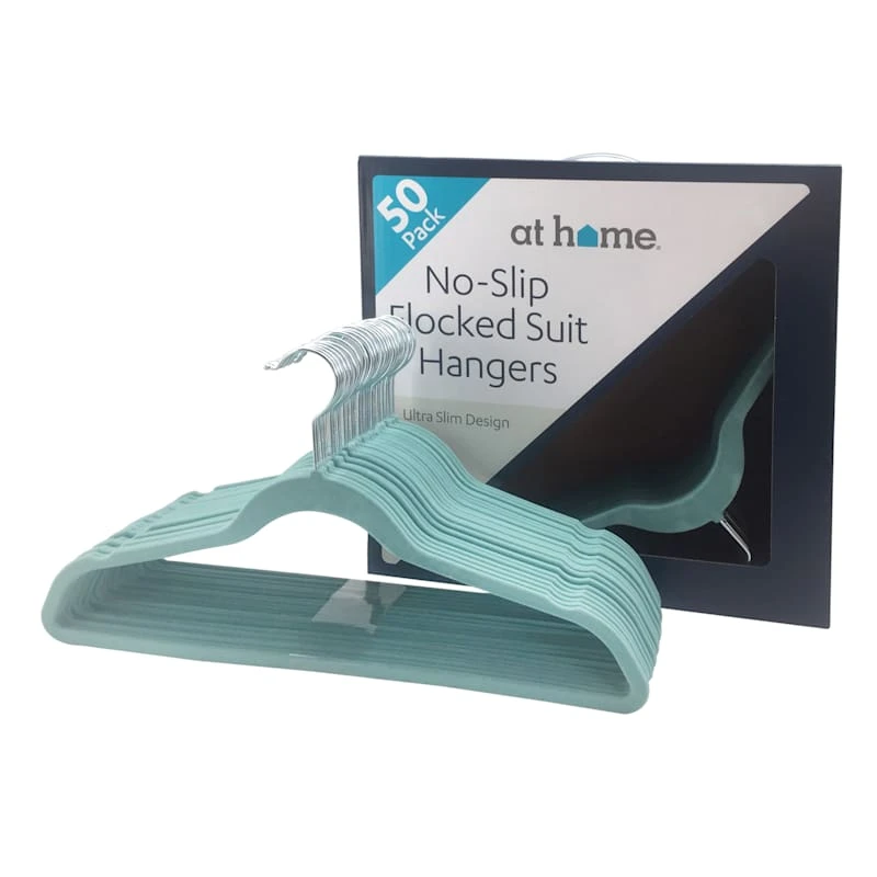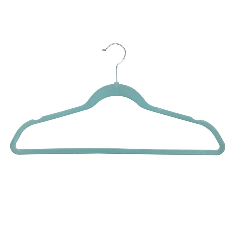 Fear not, fabulous fashionistas! We have the perfect solution to your crowded closets. This aquifer green velvet hanger pack of 50 features non-slip flocking—so no more clothes sliding off the hangers and onto the floor! And the ultra-slim design means more space in your closet, too!