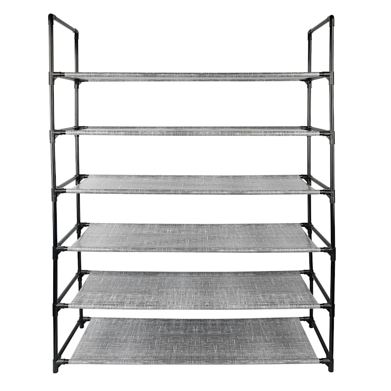 6-Tier Printed Shelf Shoe Rack, Black Linen