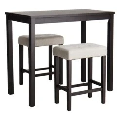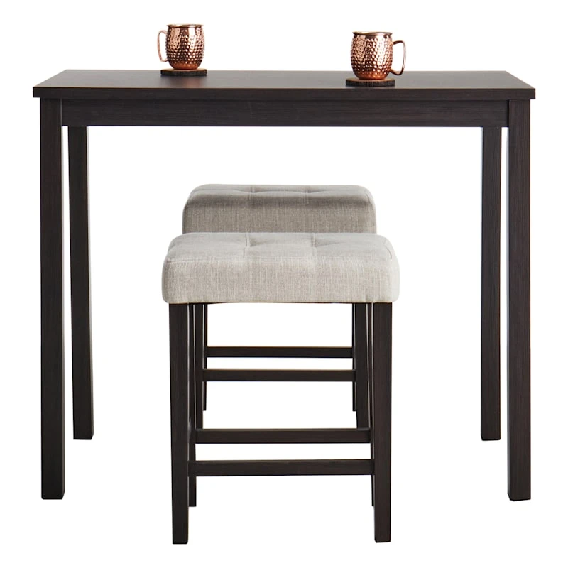 Belly up to the bar! Whether catching a quick drink or bite before heading out for an evening on the town, our Oakley pub set is a must-have for creating a bar in your home. This set can also be used as a kitchen island with seating and has hooks to hang kitchen linens. Crafted atop steel frames, each piece features a light finish wood top. Assembly required.