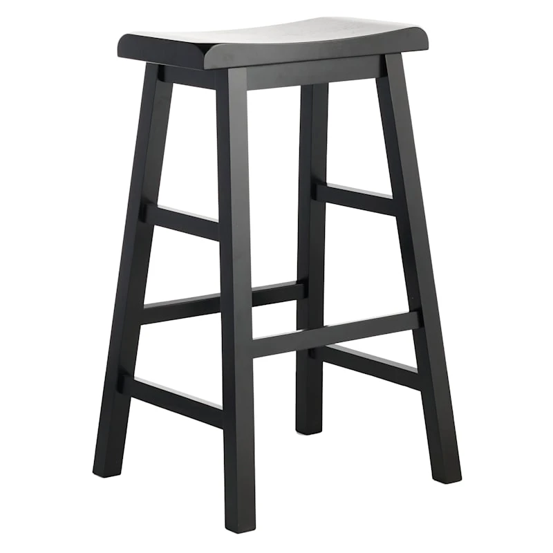 Can we get a yee-haw!?! Defined by a saddle-style seat, our 29-in. black saddle backless barstool lends a touch of simple sophistication to your living room or kitchen environment. Wood construction painted a trendy and versatile black, this stool�s ready to ride!