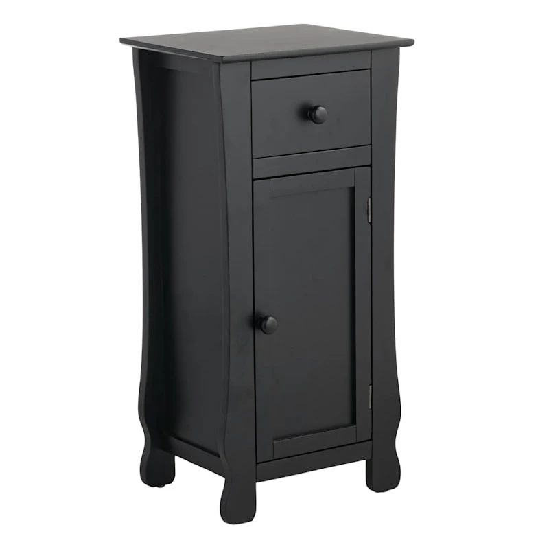 Looking for an easy storage solution for your living room or any other space? Your home will look sharp and elegant thanks to this black decorative cabinet with a drawer and door! Its neat design will match all sorts of furniture styles, and the storage compartments are spacious and handy to help keep your home tidy. Match it with a lamp, or use it as a stand for a potted plant. Or place it next to your favorite seat in the house to store books and magazines. This black end table with storage makes it neat to keep things tidy!
