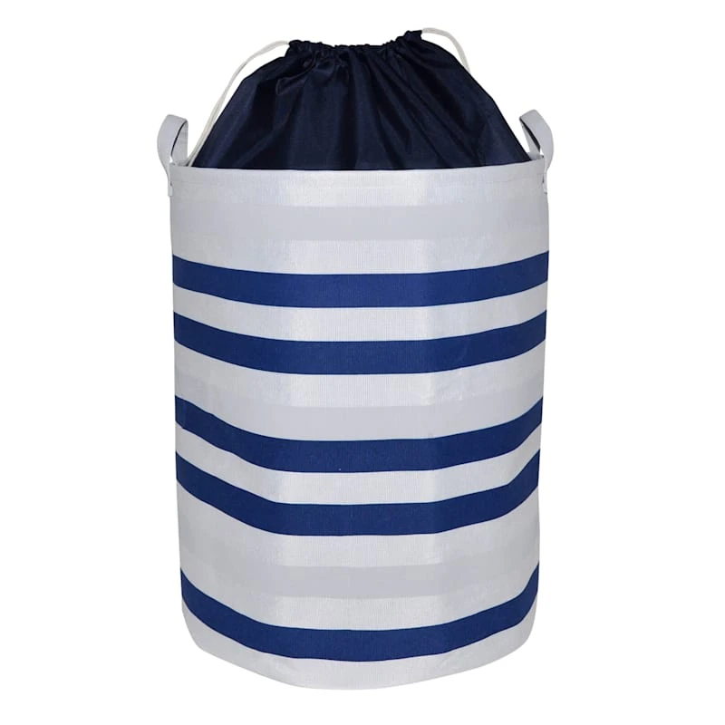 Round Collapsible Canvas Laundry Hamper With Drawstring Liner, Navy Blue