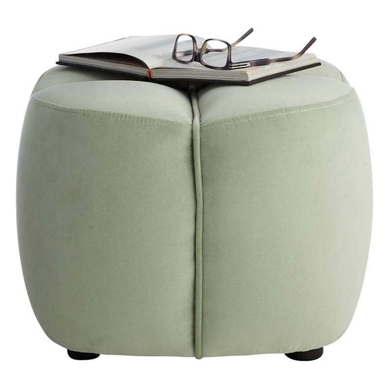 Award-winning London-based fashion designer, illustrator and innovator Tracey Boyd has created an exclusive collection for At Home. We’re especially enamored with the soft petal-like shape of our pretty Clover Frost Green Ottoman and how it serves as a seat, ottoman and fashionable focal point all at once. Customers tell is they especially appreciate the ottoman’s compact scale so it doesn’t overwhelm the room and easily fits out of the way.